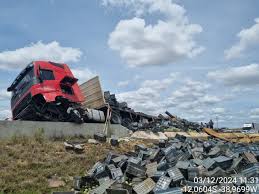 Capa Caminhão carregado de mangas tomba na BR-116 em Feira de Santana Alex Santos 3 de dezembro de 2024